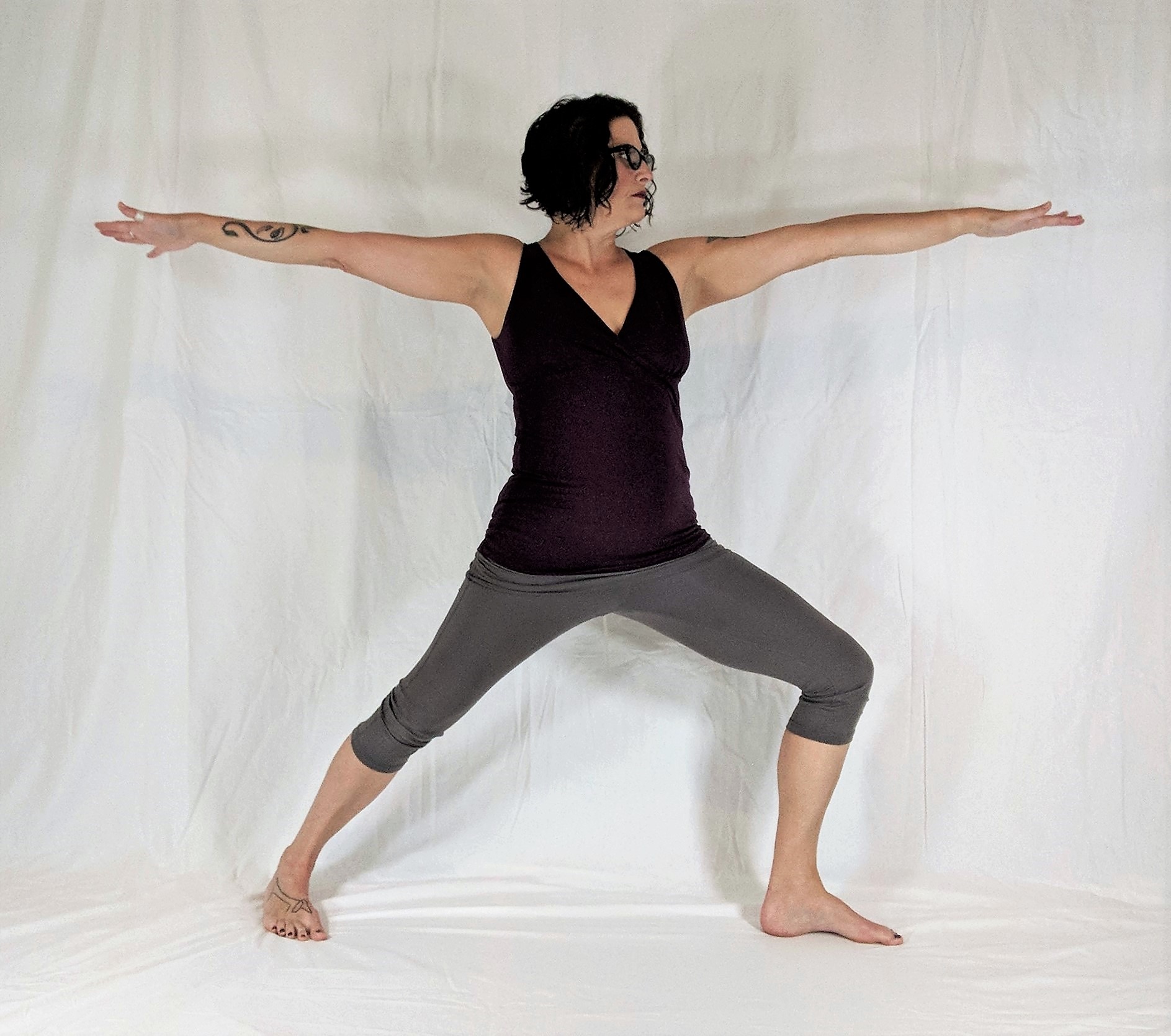 Moving through variations of Warrior II (Virabhadrasana II) can also help with stability, proprioception, strength, and balance.