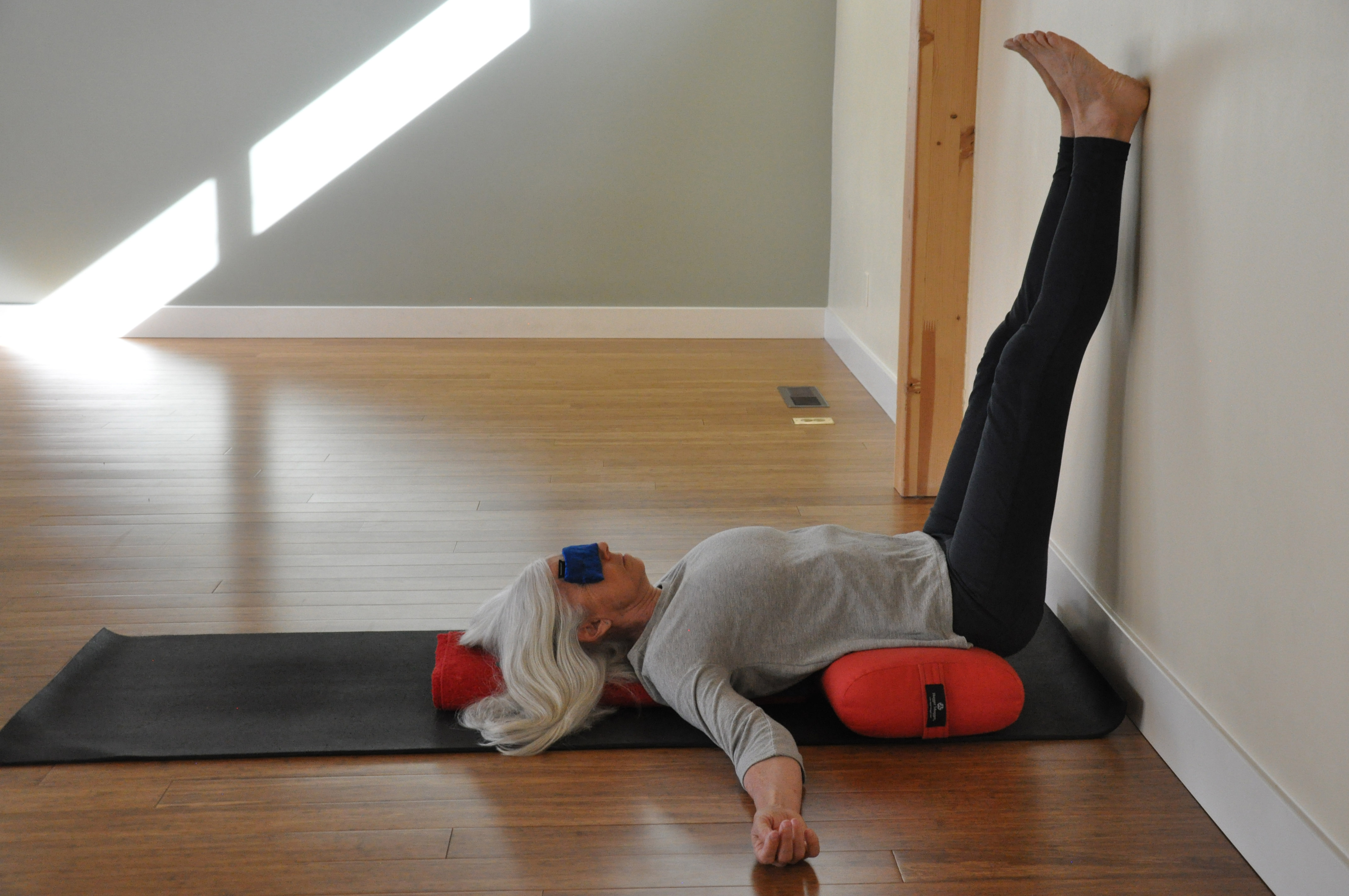 Supported inverted poses are particularly effective for reducing stress and quieting your mind because these yoga poses use gravity to trigger the relaxation response through the mechanisms that control your blood pressure. You don’t need a mental focus (although you can use one). As long as you are warm, quiet, and comfortable in the pose, all you have to do is let the pose work its magic.